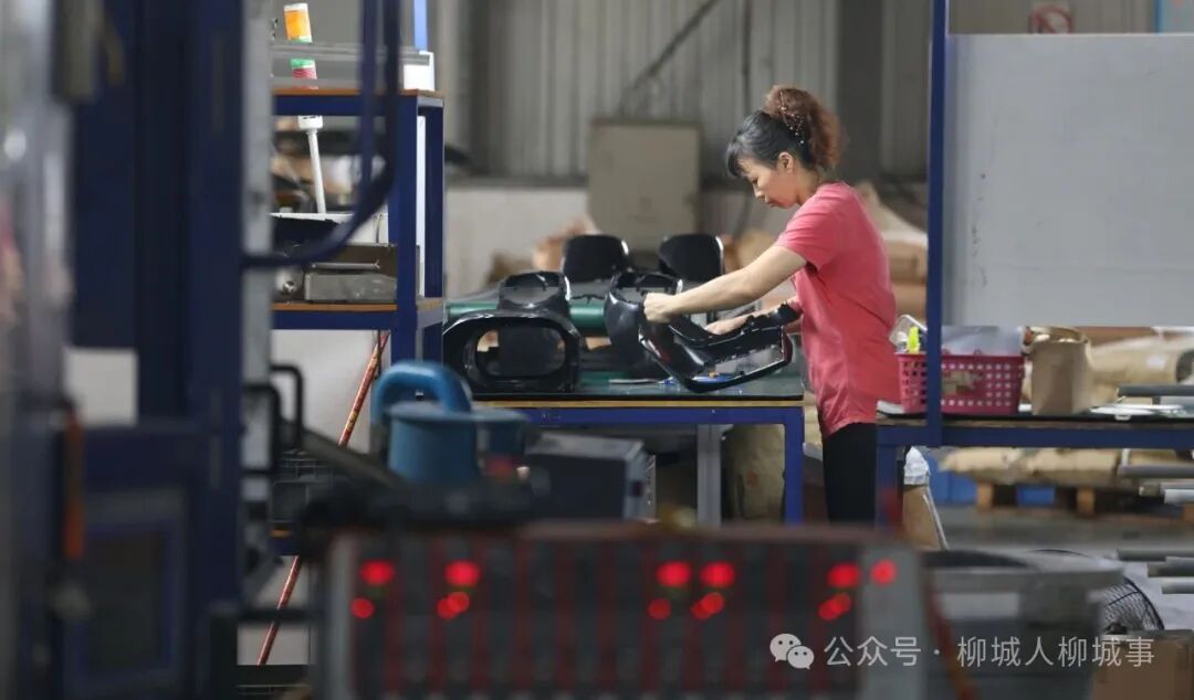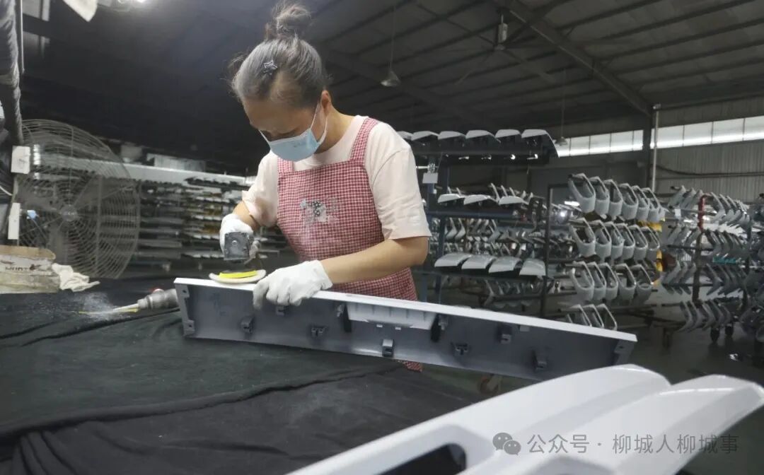 10月15日,位于柳城縣工業(yè)園沙埔片區(qū)的柳城塑創(chuàng)科技發(fā)展有限公司,90多個(gè)工人忙著趕制汽車后擾流板、行李架等產(chǎn)品,各車間一派忙碌的景象。