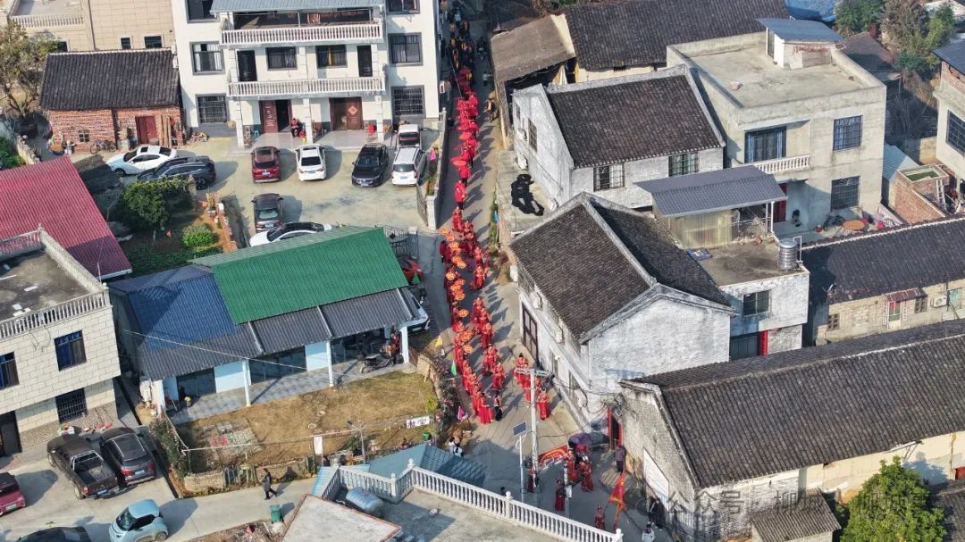 當(dāng)天上午,外嫁“金花”們身著大紅禮服,撐著花傘,挑著花籃,在舞獅隊(duì)的帶領(lǐng)下,從東泉鎮(zhèn)新時(shí)代文明實(shí)踐廣場(chǎng)走回村中。村中的鄉(xiāng)親們,搭起拱門,放起鞭炮,迎接他們的“女兒”回家。