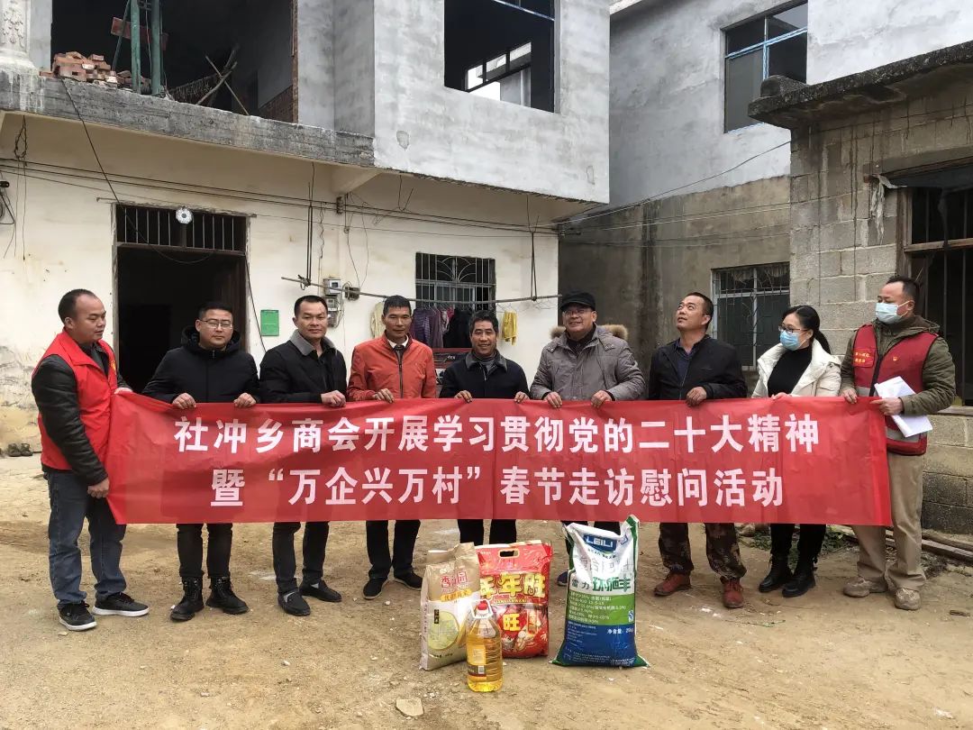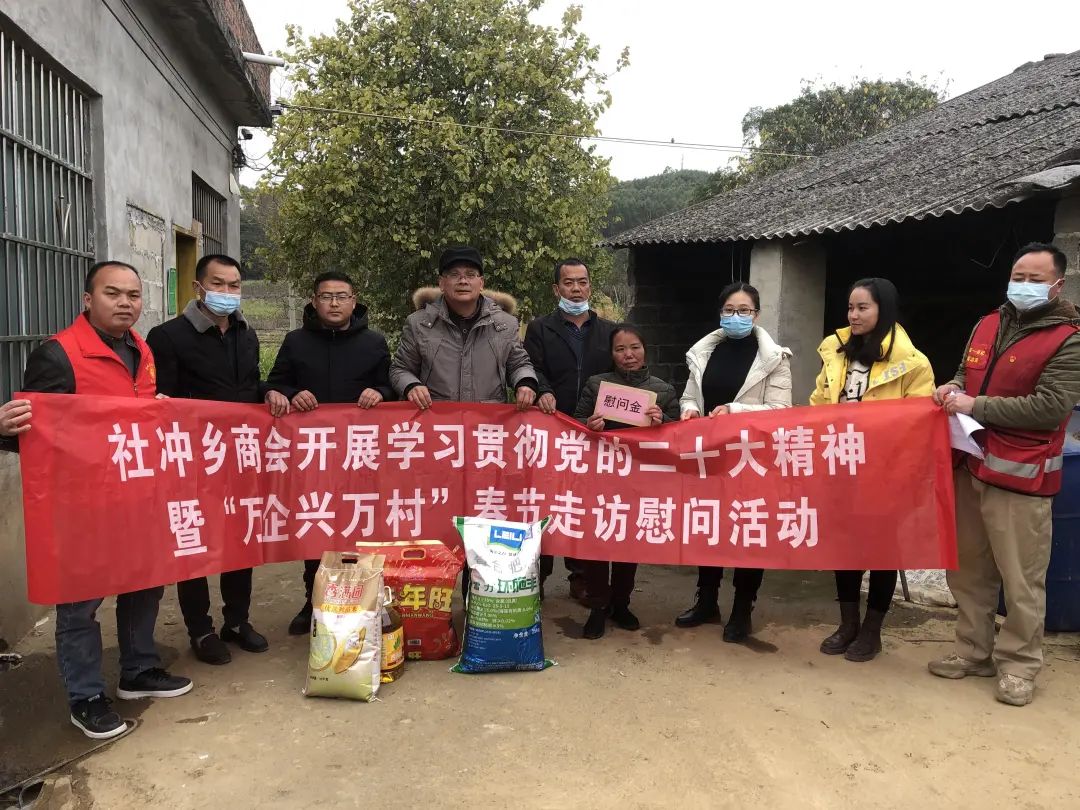 春節(jié)來(lái)臨之際,為深入學(xué)習(xí)貫徹黨的二十大精神,進(jìn)一步發(fā)揚(yáng)新時(shí)代“企業(yè)家精神”,勇挑重任、盡銳出戰(zhàn),用心用情用力投入鄉(xiāng)村振興主戰(zhàn)場(chǎng),1月16日,社沖鄉(xiāng)商會(huì)企業(yè)代表開(kāi)展春節(jié)走訪慰問(wèn)活動(dòng),為社沖鄉(xiāng)的脫貧戶(hù)、困難群眾等送上新年美好的祝愿及關(guān)懷溫暖。