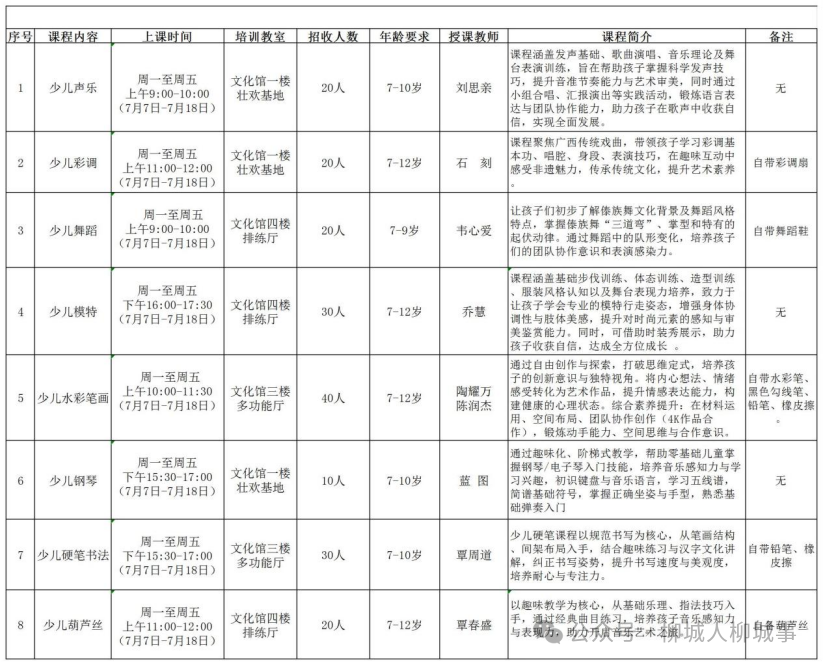 (七)學員錄取通知方式:2025年7月2日將在柳城縣文化館微信公眾號公布錄取學員名單