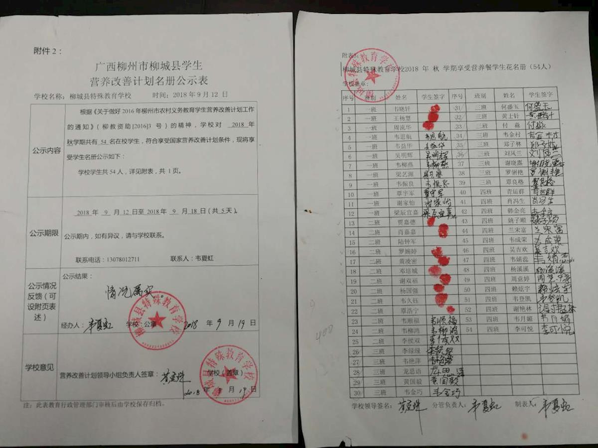 柳城縣特殊教育學(xué)校2018年秋學(xué)期學(xué)生營養(yǎng)改善計劃資助名單