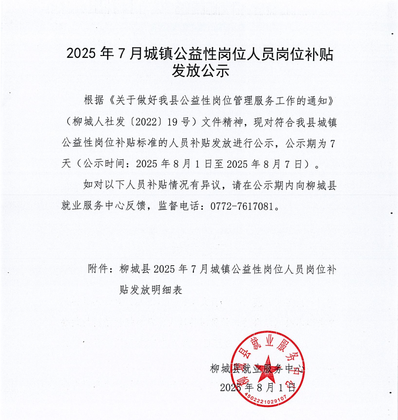 2025年7月城鎮(zhèn)公益性崗位人員崗位補貼發(fā)放公示