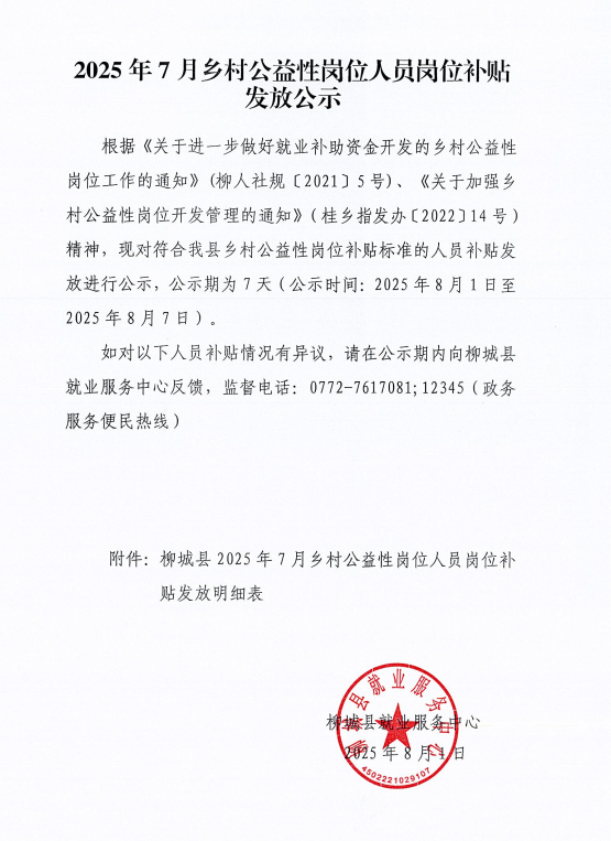 2025年7月鄉(xiāng)村公益性崗位人員崗位補貼發(fā)放公示