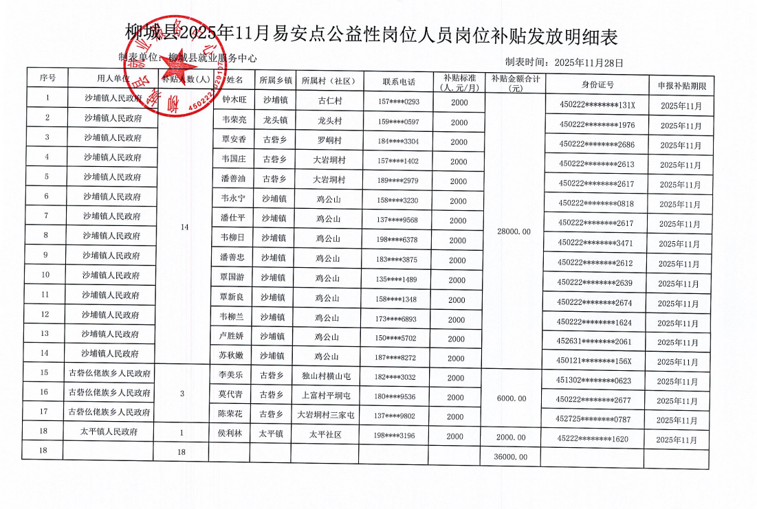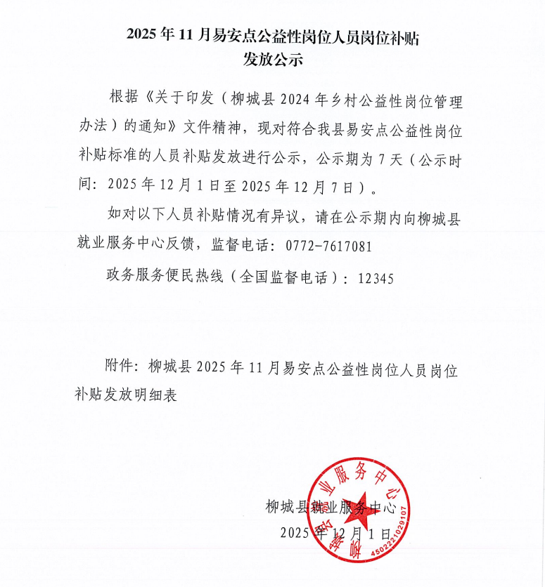 2025年11月易安點(diǎn)公益性崗位人員崗位補(bǔ)貼發(fā)放公示