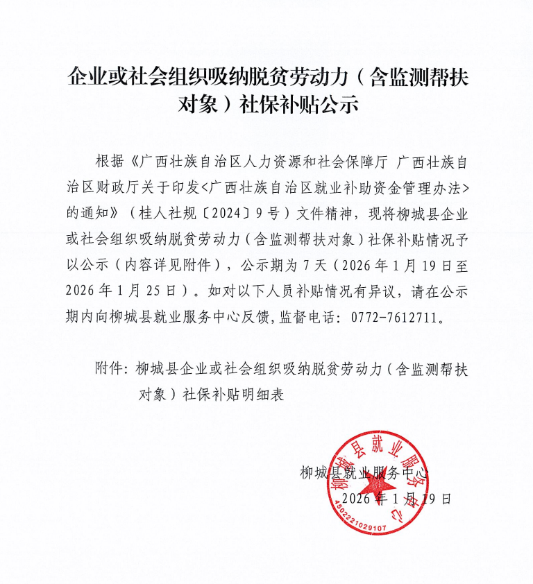來源: 柳城縣人力資源和社會保障局 | 發(fā)布日期: 2026-01-19 10:55 | 作者: