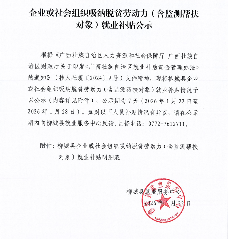 來源: 柳城縣人力資源和社會(huì)保障局 | 發(fā)布日期: 2026-01-22 16:40 | 作者: