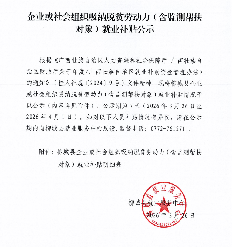 來(lái)源: 柳城縣人力資源和社會(huì)保障局 | 發(fā)布日期: 2026-03-26 11:10