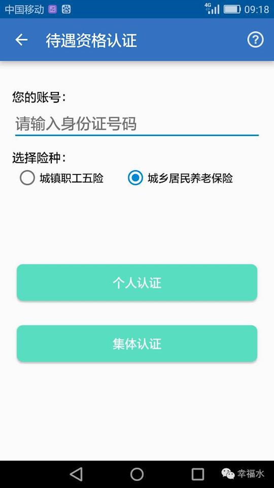 3.?選中“城鄉(xiāng)居民養(yǎng)老保險(xiǎn)”圓圈,在橫線上輸入驗(yàn)證人員身份證號(hào)碼,點(diǎn)擊“個(gè)人認(rèn)證”按鈕。如圖4: