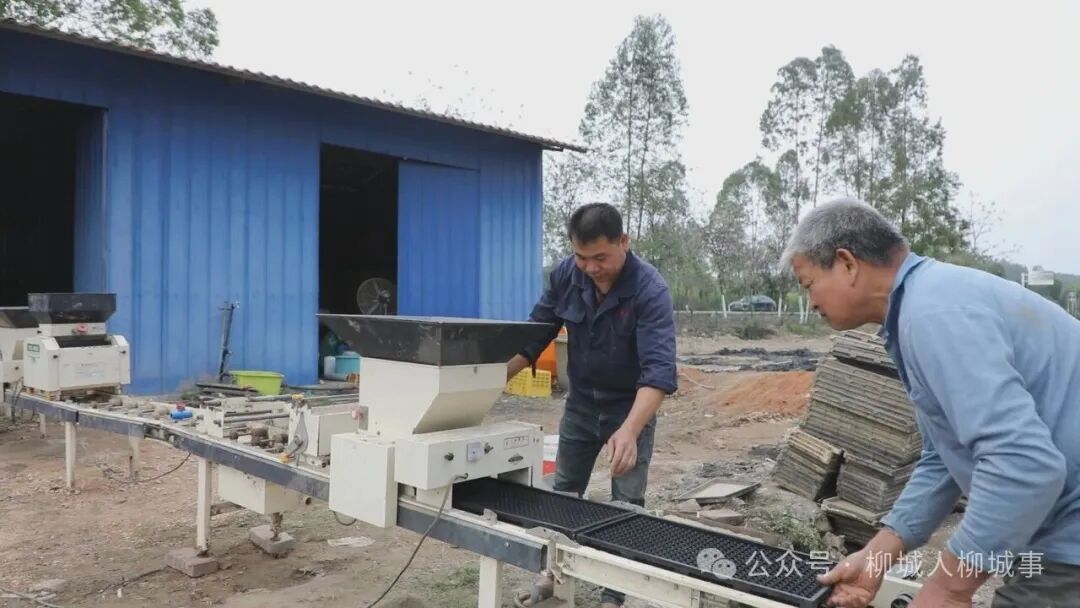 在那里他看到了機(jī)械育秧帶來的便捷和好處。經(jīng)過一段時(shí)間的技術(shù)積累,2024年韋蘭保決定回到家鄉(xiāng),自己經(jīng)營公司。韋蘭保向當(dāng)?shù)卮迕褡赓U了約50畝的土地,用作育秧房、育秧地,隨后又以每臺(tái)4萬元的價(jià)格購入了3臺(tái)全自動(dòng)育秧機(jī)器?!皺C(jī)械化育秧的好處就是減少人工成本,秧苗成活率高,育出的秧苗更加健壯,大大提升了水稻的種植效率,也為后面農(nóng)戶搞機(jī)械化收割奠定一個(gè)良好的基礎(chǔ)。”韋蘭保介紹。