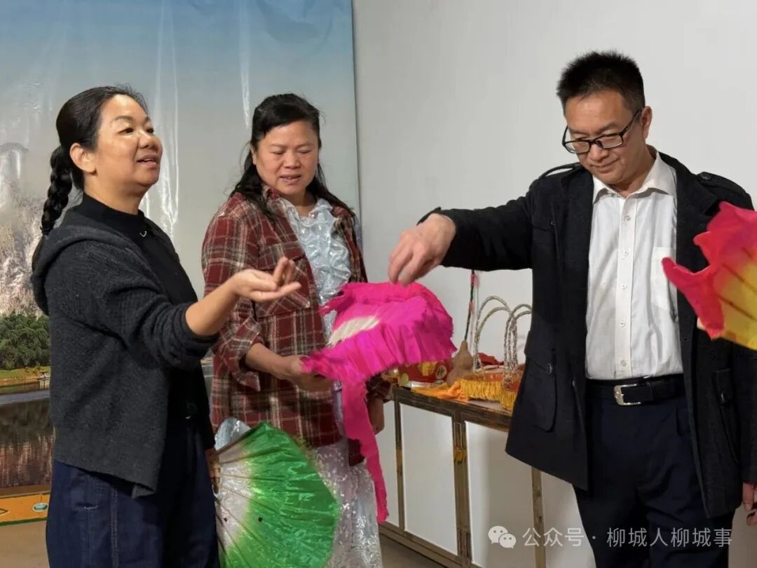 在老還童彩調(diào)劇團(tuán),文藝工作者們先后參觀了劇團(tuán)排練廳、道具陳列室,近距離感受彩調(diào)藝術(shù)的獨(dú)特魅力,詳細(xì)了解劇團(tuán)發(fā)展歷程與少兒彩調(diào)傳承成果。劇團(tuán)負(fù)責(zé)人周錫生向采風(fēng)團(tuán)介紹,自2010年與妻子返鄉(xiāng)以來,二人自籌資金改造排練場(chǎng)地,克服諸多困難創(chuàng)辦公益少兒彩調(diào)班,在艱辛探索中走出了一條獨(dú)具柳城特色的非遺傳承之路。他們創(chuàng)新傳承模式,將彩調(diào)傳統(tǒng)元素與少兒舞蹈相融合,創(chuàng)編出獨(dú)具特色的校園課間操,讓彩調(diào)藝術(shù)走進(jìn)校園、扎根童心,多年來累計(jì)培養(yǎng)200余名彩調(diào)少年,斬獲40余項(xiàng)各級(jí)各類獎(jiǎng)項(xiàng),先后培養(yǎng)出8朵中國(guó)少兒戲曲“小梅花”。