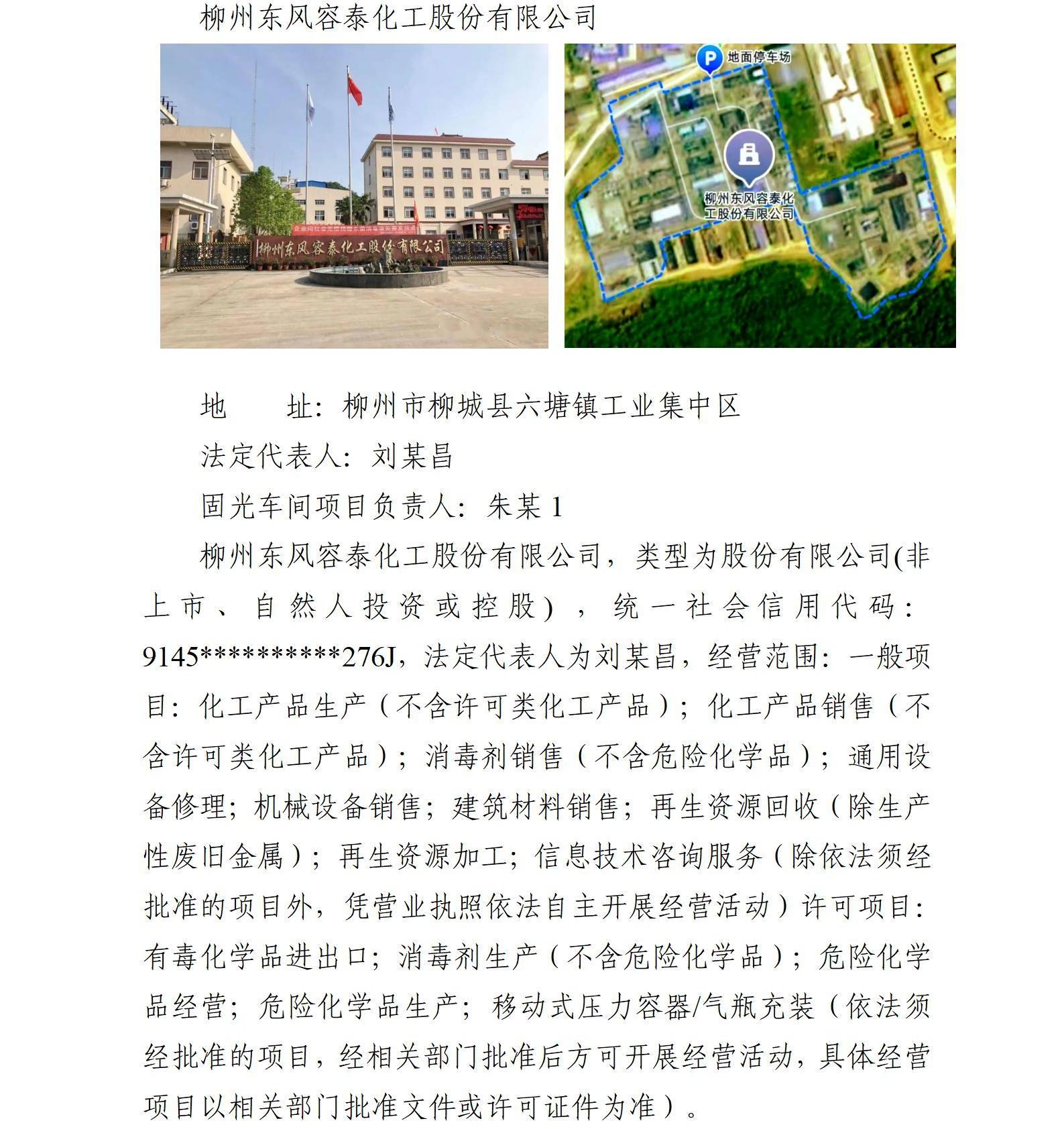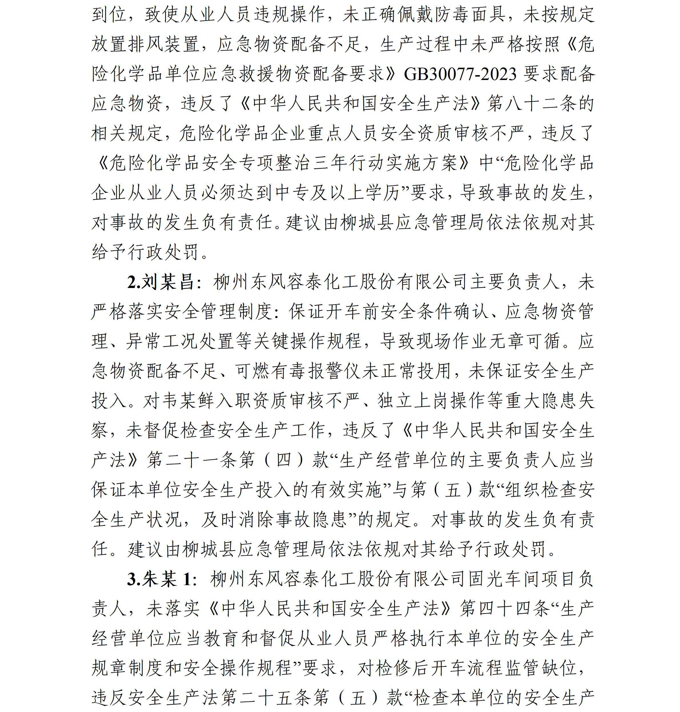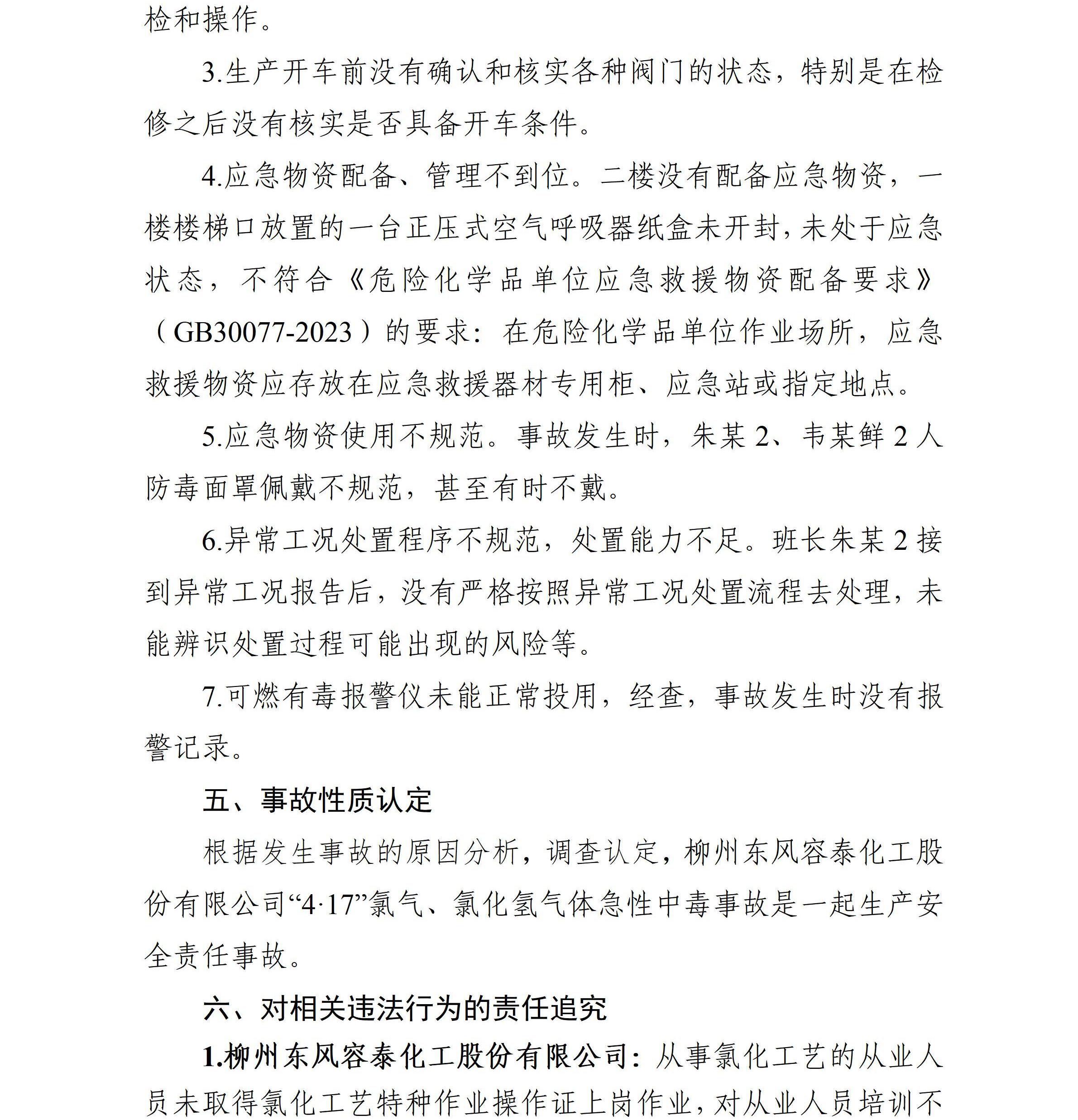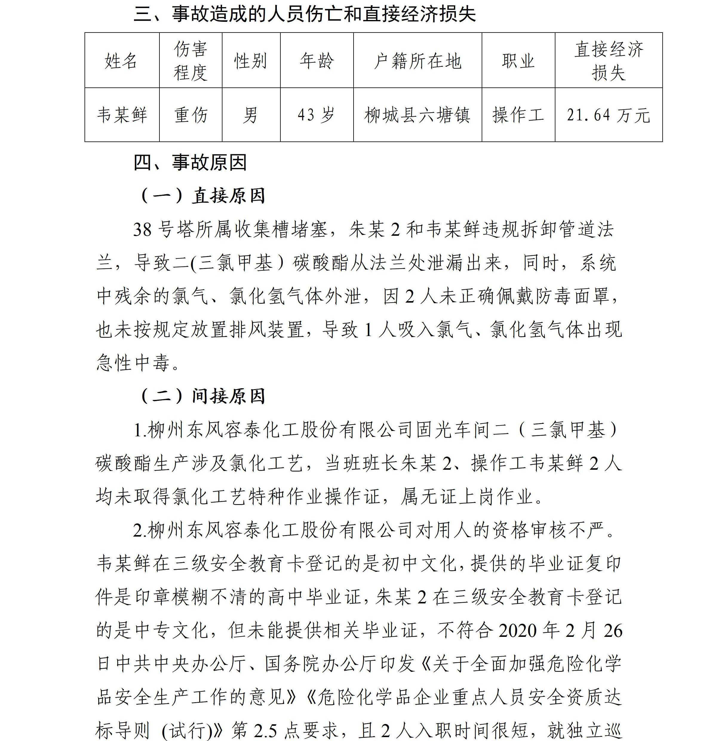 柳州東風(fēng)容泰化工股份有限公司“4·17”化學(xué)氣體傷害一般事故調(diào)查報告