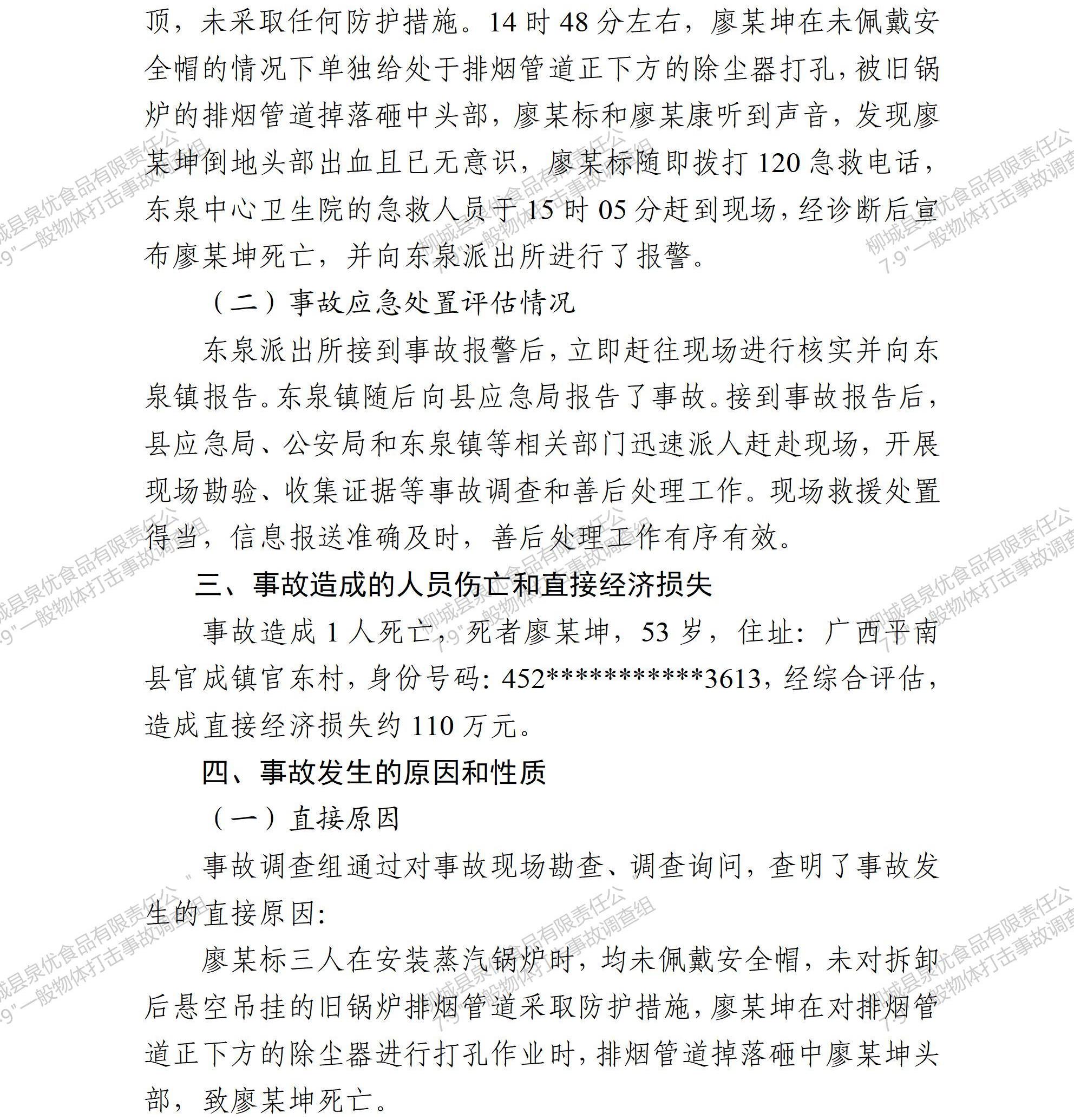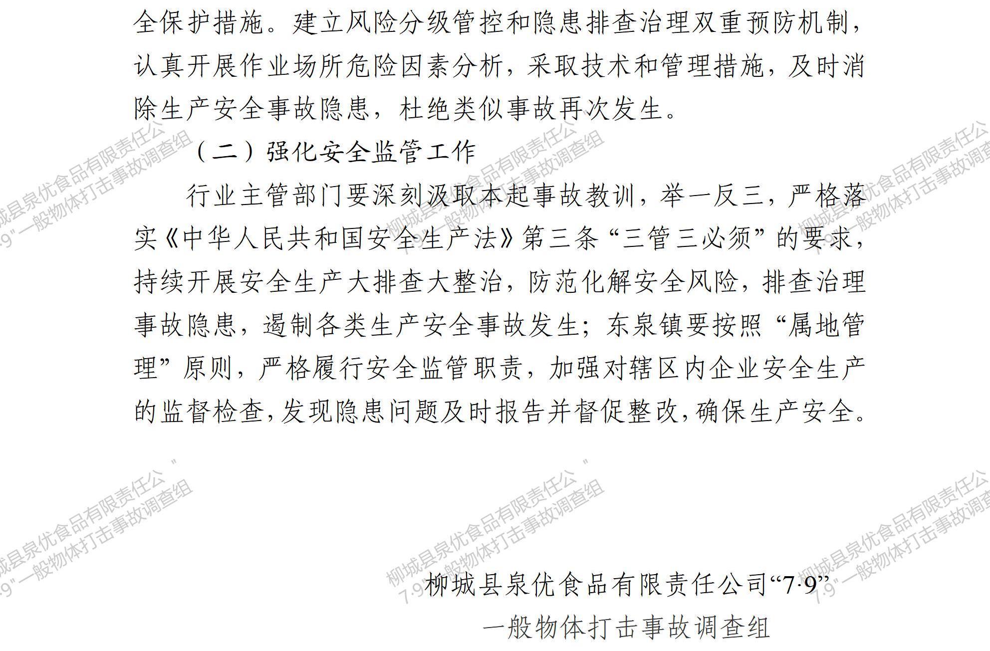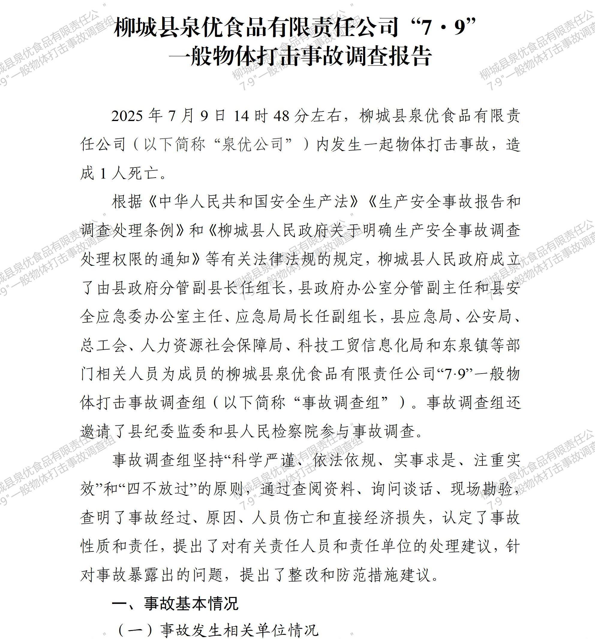 柳城縣泉優(yōu)食品有限責(zé)任公司“7·9”一般物體打擊事故調(diào)查報(bào)告