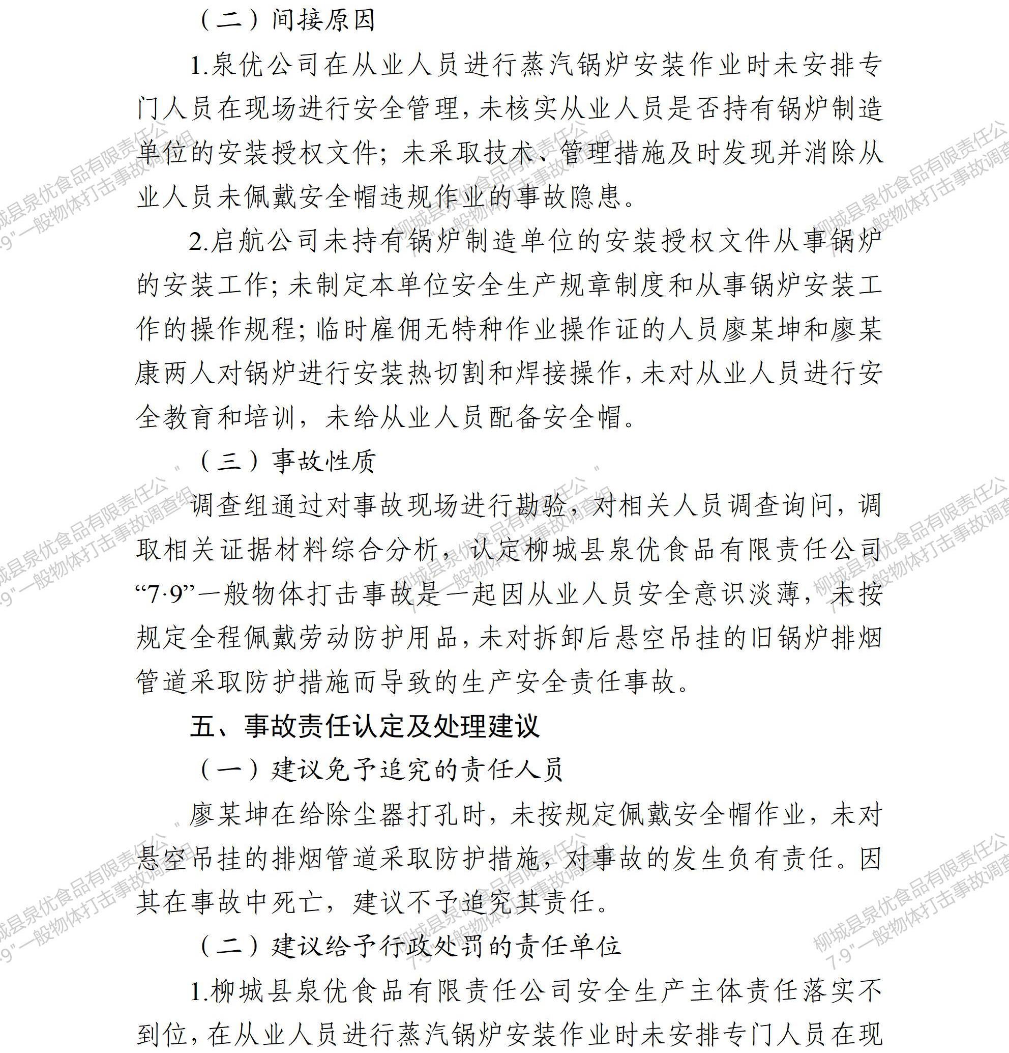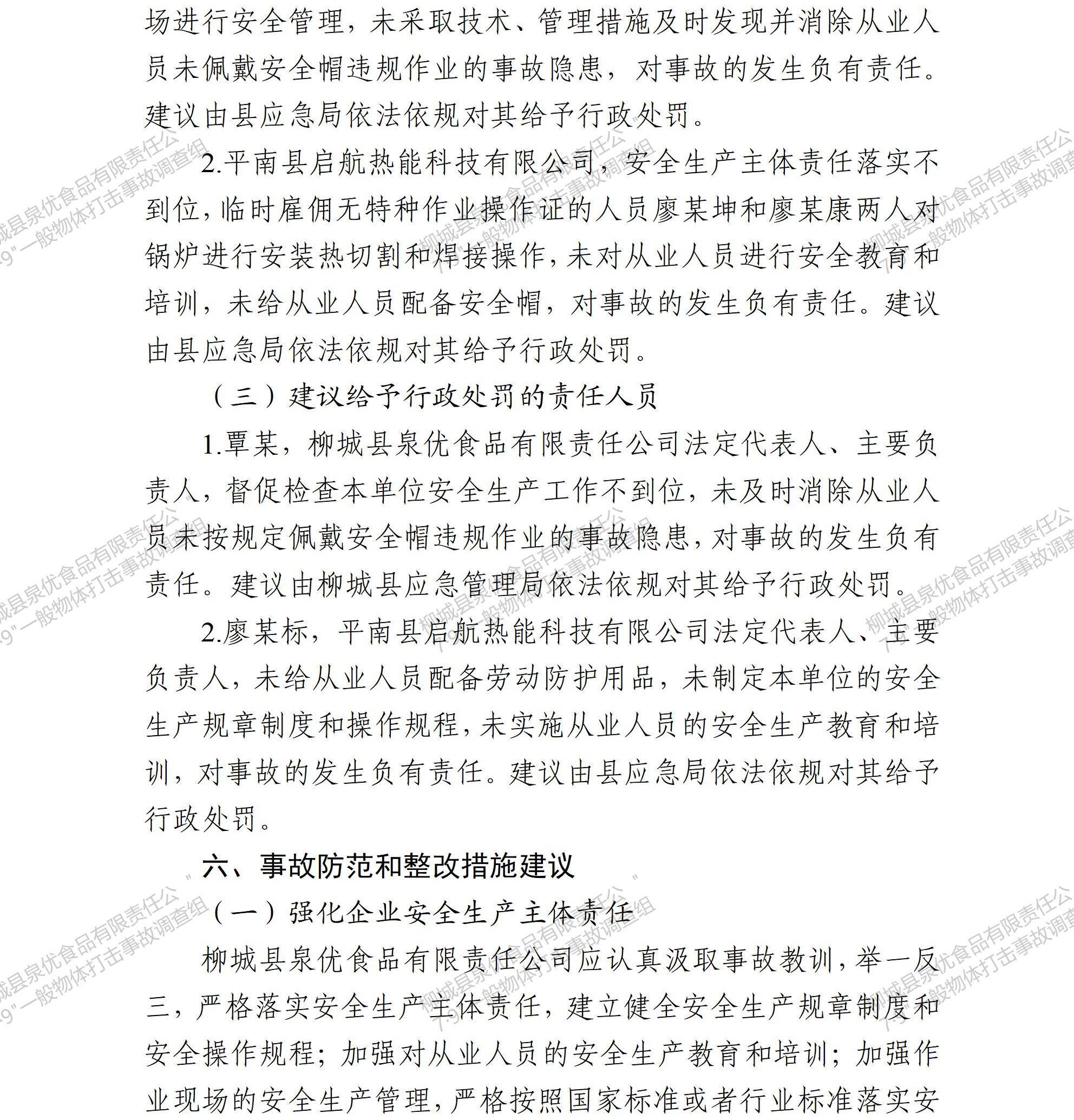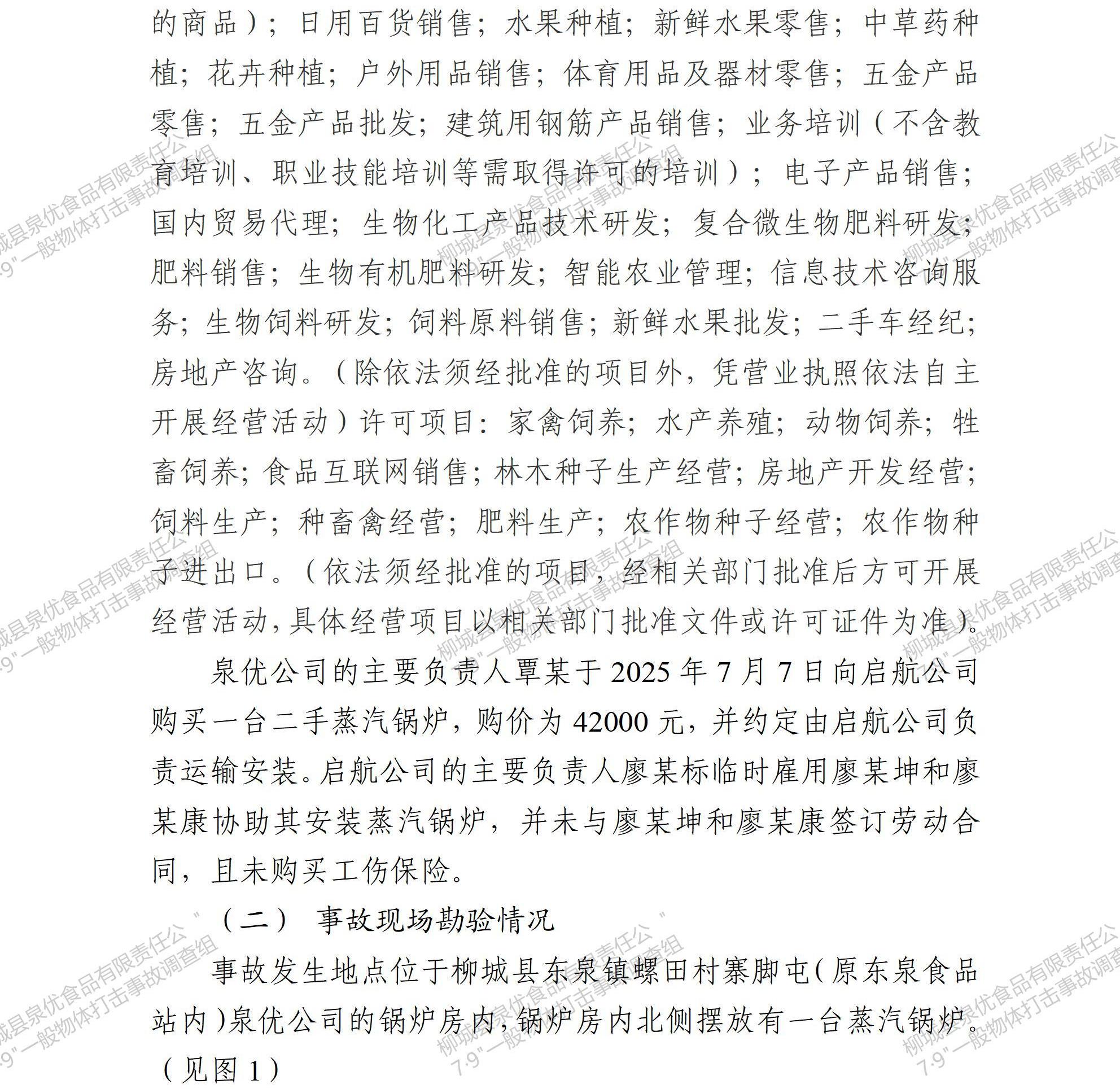 柳城縣泉優(yōu)食品有限責(zé)任公司“7·9”一般物體打擊事故調(diào)查報(bào)告