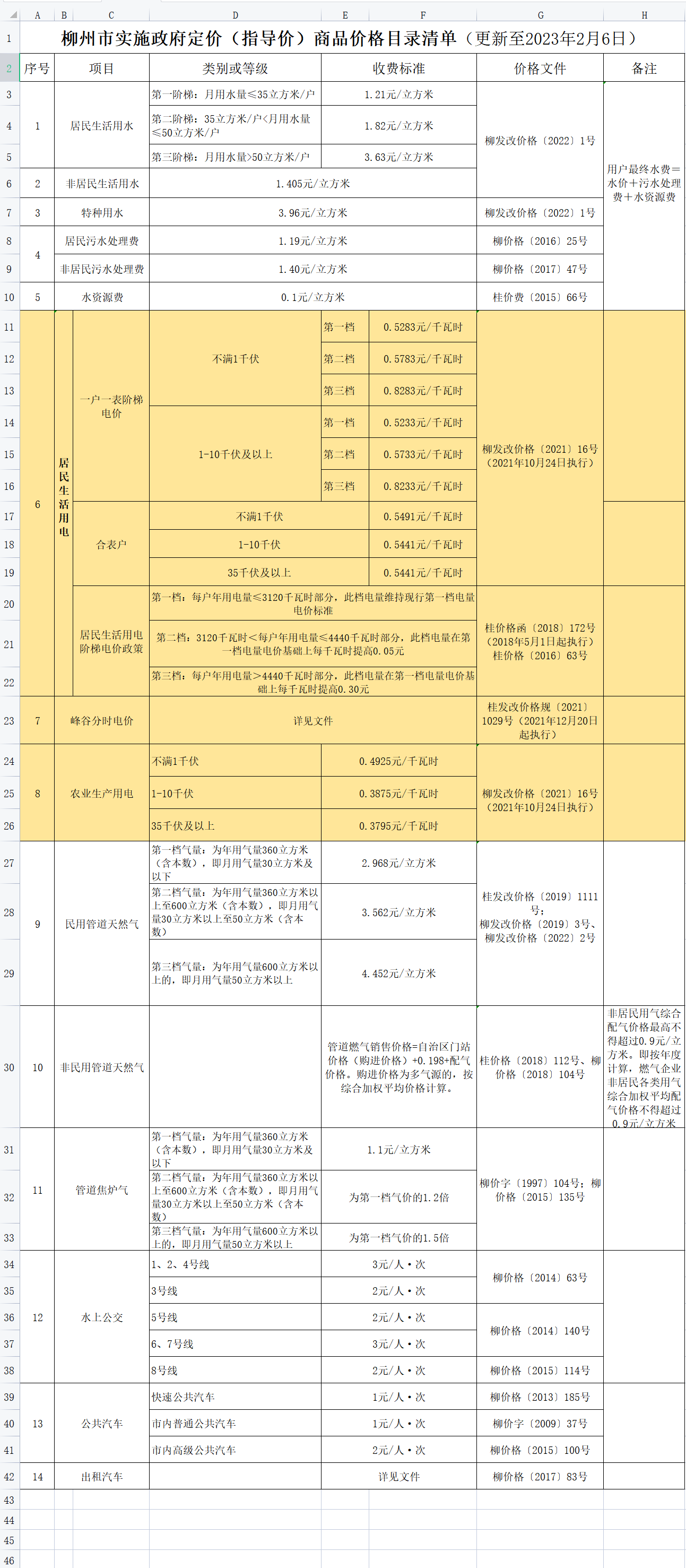 柳州市實(shí)施政府定價(jià)(指導(dǎo)價(jià))商品價(jià)格目錄清單