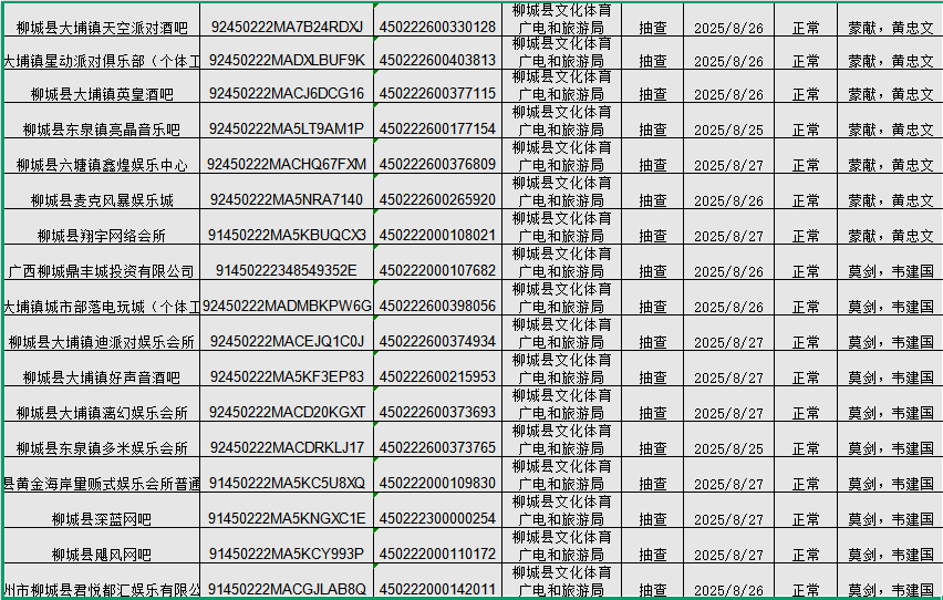 柳城縣文化體育廣電和旅游局2025年第三季度廣西“雙隨機(jī)、一公開(kāi)”監(jiān)管平臺(tái)聯(lián)合抽查檢查結(jié)果公示