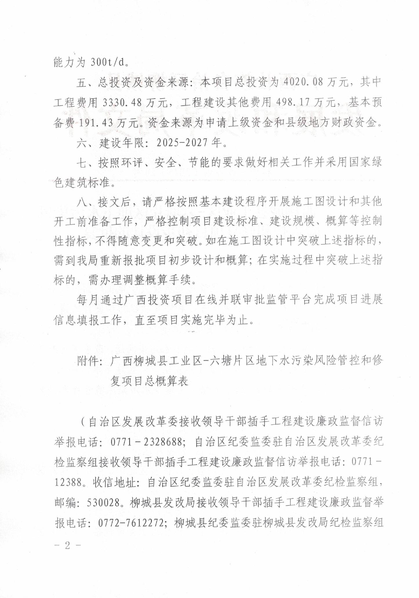 關(guān)于柳城縣城鎮(zhèn)地下污水管網(wǎng)建設(shè)改造工程可行性研究報(bào)告的批復(fù)