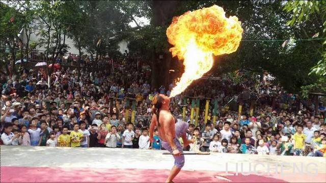 民族風(fēng)情表演:梅花高樁舞獅(由中國南師冠軍,國家A級獅隊表演)、烈火燒身、赤腳踩鋼刀、踩玻璃、民族歌舞、小豬高臺跳水表演。
