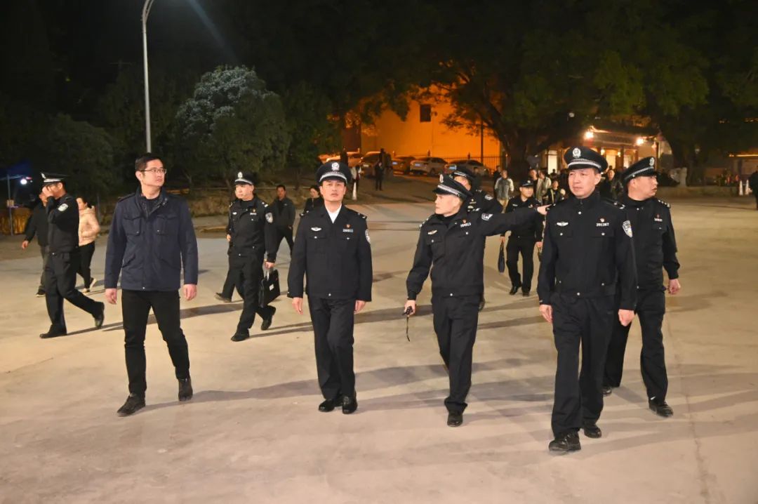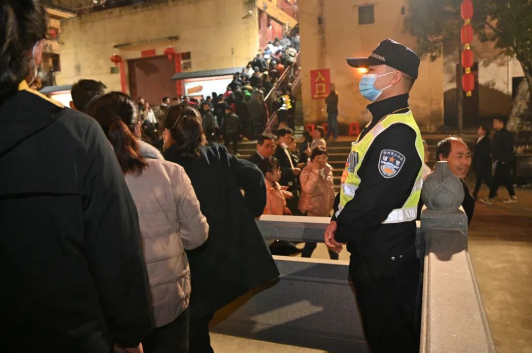 ▲2月26日晚,市公安局黨委委員、政治部主任熊啟堯,柳城縣委常委、政法委書記金耀,市公安局治安支隊支隊長蔡天來等領(lǐng)導(dǎo)親臨廟會活動現(xiàn)場指導(dǎo)。