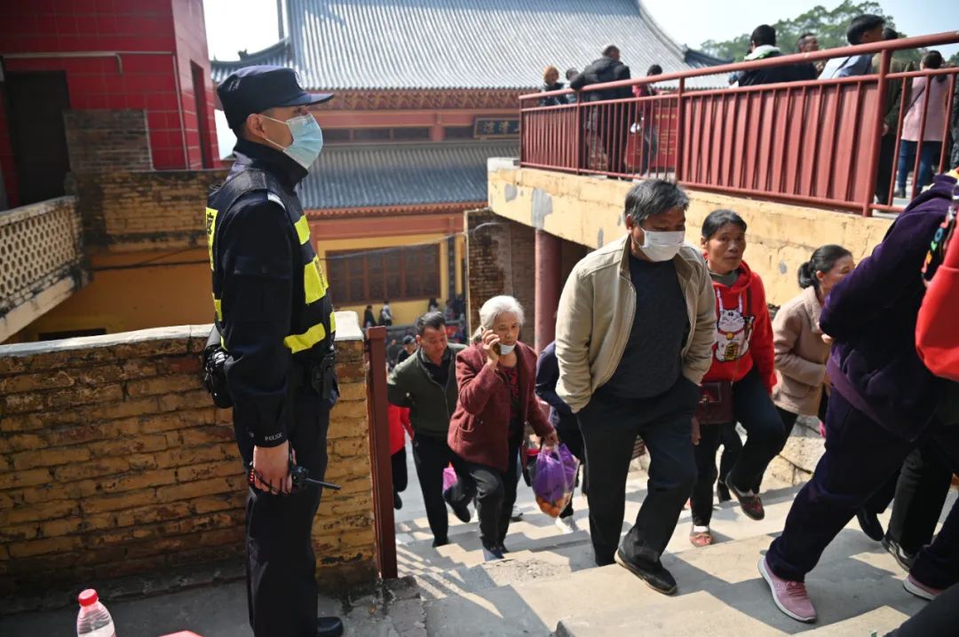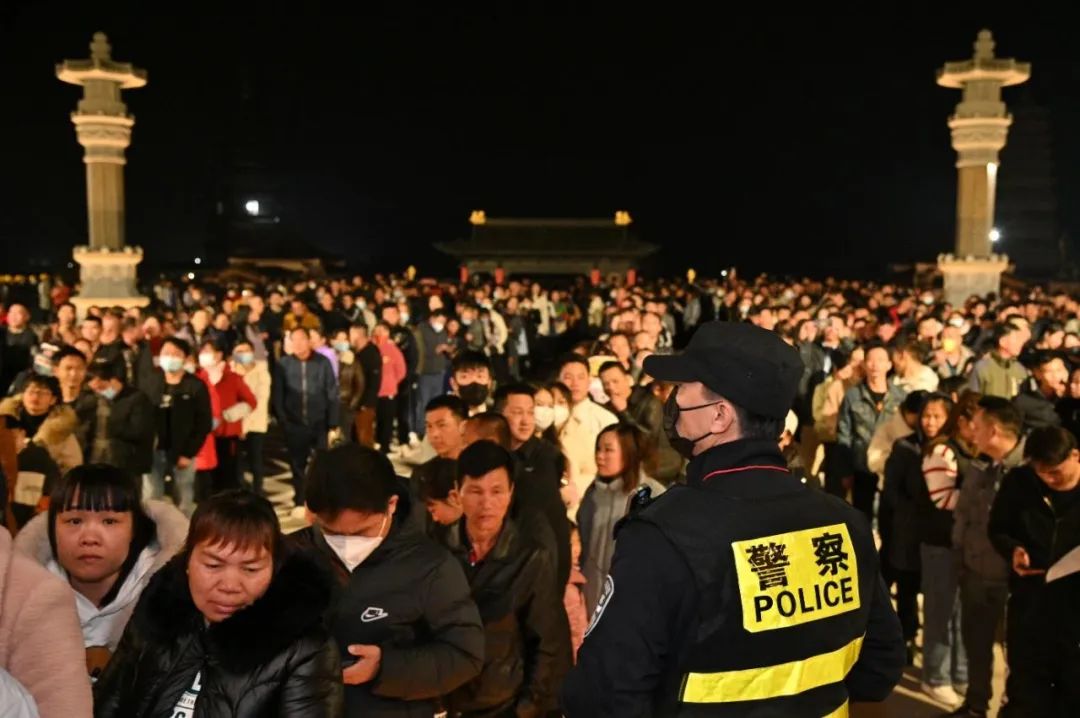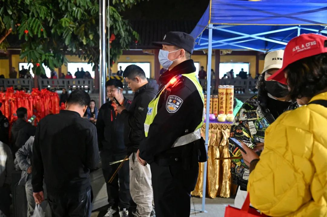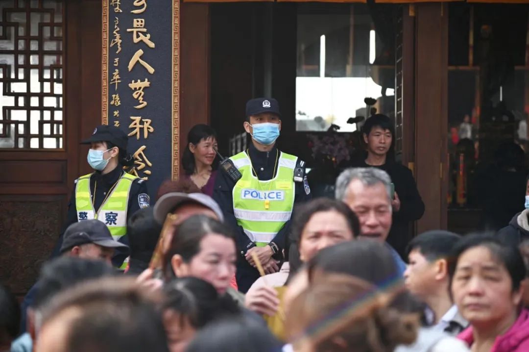 堅持多維安保,聚力現(xiàn)場保衛(wèi)守安全其中開山寺的安保工作以天王殿前大平臺和普光明殿前廣場兩個核心點,以信眾燒香路線為安保圈,以交通管制區(qū)域為輻射面,形成“點圈面”多維安保機制。