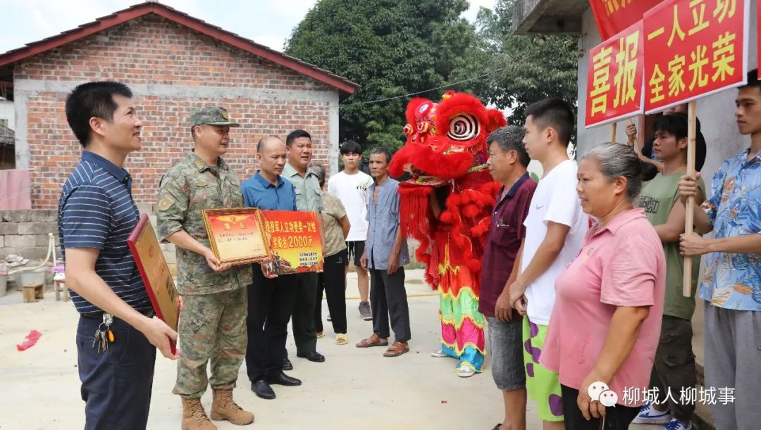 7月19日,由柳城縣人民武裝部、退役軍人事務(wù)局組成的“送獎報喜團”來到東泉鎮(zhèn)螺田村馬安屯,為榮立三等功現(xiàn)役軍人李琳的家人送上立功喜報和榮譽證書,并致以祝福。