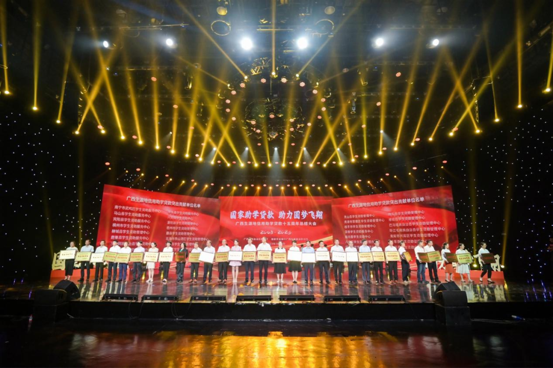7月20日,廣西生源地信用助學(xué)貸款十五周年工作總結(jié)大會在廣西廣播電視臺演播廳召開。大會全面總結(jié)十五年來廣西生源地信用助學(xué)貸款工作,交流典型工作經(jīng)驗(yàn),并為榮獲廣西生源地信用助學(xué)貸款突出貢獻(xiàn)單位和個人頒發(fā)獎牌和證書。