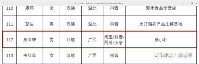 8月2日,中國(guó)青年報(bào)客戶端發(fā)布的“2023尋訪“青耘中國(guó)”鄉(xiāng)村振興青年公益主播活動(dòng)復(fù)薦入圍名單”中,莫金雄的名字赫然出現(xiàn)在入圍名單里,柳城縣網(wǎng)絡(luò)名人培育工作取得初步成效。