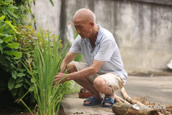 初秋清晨,天氣晴朗,柳城縣沙埔鎮(zhèn)下青石屯村民劉慶輝就蹲在自家院子里,神情專注地看著花圃里種的幾株水稻,他用手翻看著水稻的葉片、莖稈,嘴里還小聲說:“一直沒澆水,生長得還很好,抗旱性不錯?!痹纭⑼碛^察水稻的生長情況,是已經(jīng)80歲的劉慶輝每天一定會做的事。