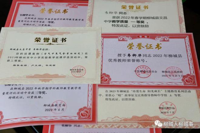 在工作上的辛勤耕耘、優(yōu)異表現(xiàn),韋柳華先后被評為柳州市“優(yōu)秀共青團干部”、柳城縣“優(yōu)秀共青團干部”、“優(yōu)秀共產(chǎn)黨員”、“優(yōu)秀教育工作者”、“優(yōu)秀教師”等諸多殊榮。