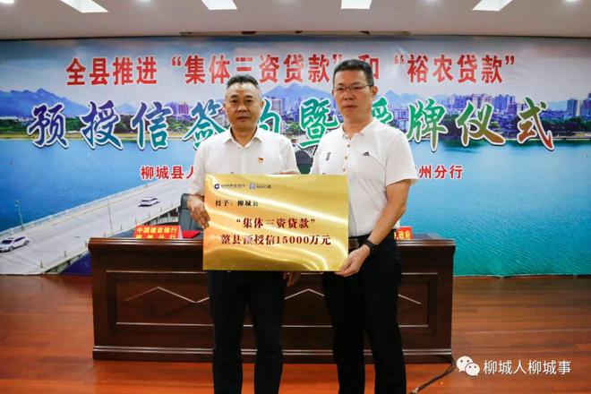 儀式上,建設銀行柳州分行為柳城縣人民政府授予“集體三資貸款”整縣預授信15000萬元合作牌匾和“裕農貸款”整縣預授信136000萬元合作牌匾,向全縣各鄉(xiāng)鎮(zhèn)授予“裕農貸款”整鎮(zhèn)預授信牌匾。