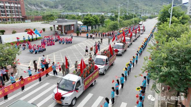 在柳城縣舉行的2023年秋季新兵歡送巡游活動(dòng)中,新兵分成幾組,乘坐巡游車輛,從縣人武部沿既定路線出發(fā)。沿路的送兵隊(duì)伍有序地站在道路兩側(cè),給予新兵最美好的祝福和最暖心的囑托。