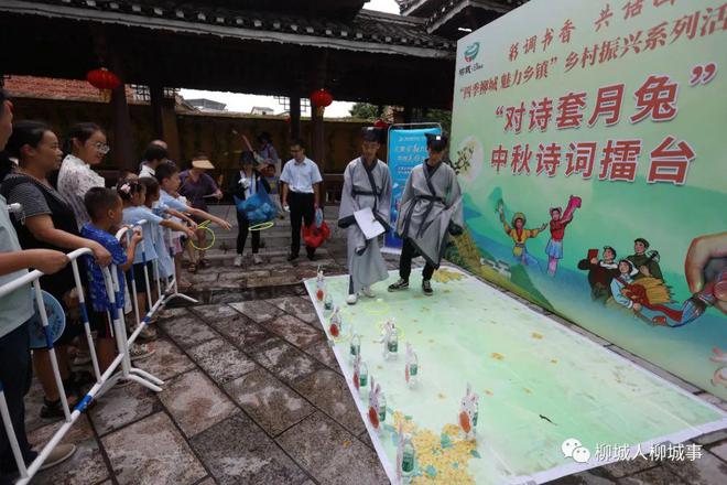 “床前明月光,疑是地上霜。舉頭望明月,低頭思故鄉(xiāng)?!毙∨笥褌冋谡J(rèn)真背誦古詩。活動(dòng)以中秋對(duì)詩和月兔為特色設(shè)置了一處對(duì)詩擂臺(tái),游客們排隊(duì)參與,接受身著古詩人服裝的工作人員對(duì)詩考驗(yàn),只要能夠完整背誦中秋、月亮等主題的古詩,就能夠獲得套圈機(jī)會(huì)以贏取月兔玩偶。