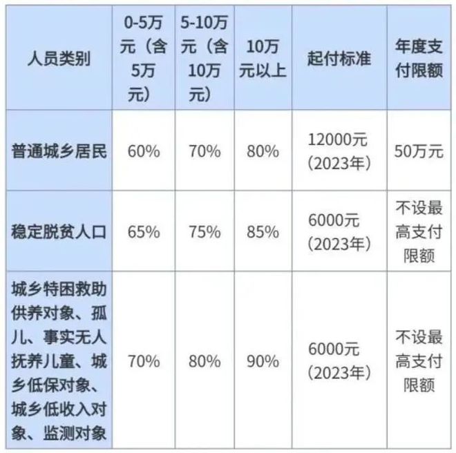 基本醫(yī)療保險(xiǎn)支付后個(gè)人累計(jì)負(fù)擔(dān)超過(guò)大病保險(xiǎn)起付線以上部分,由城鄉(xiāng)居民大病保險(xiǎn)給予保障。在同一個(gè)結(jié)算年度內(nèi),大病保險(xiǎn)起付線為12000元,大病保險(xiǎn)最高支付限額為50萬(wàn)元。