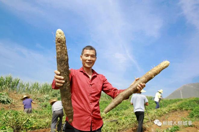 眼下正值淮山收獲季節(jié)。連日來,柳城縣社沖鄉(xiāng)的2000多畝淮山陸續(xù)上市。小編在社沖鄉(xiāng)倉貝村倉貝屯的一處淮山種植基地看到,近10名工人正在采挖淮山。