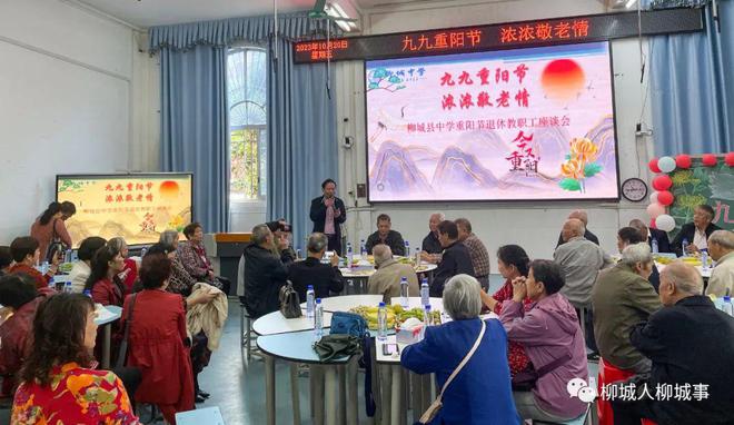 10月20日,柳城縣中學開展重陽節(jié)退休教職工座談會,70名退休教職工歡聚校園,共同慶祝佳節(jié)。