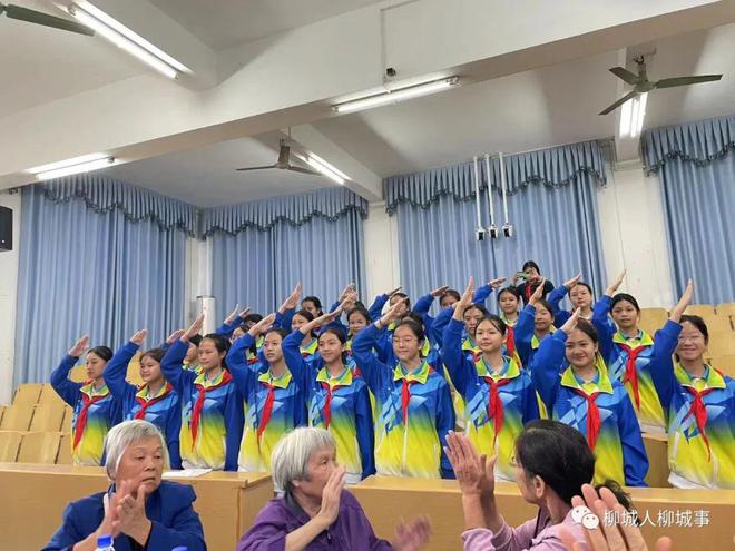活動中,柳城縣中學初中部22名少先隊員為退休教職工獻上經典校園歌曲《當我走過老師的窗前》,表演了手語操《我們是共產主義接班人》,還朗誦了重陽節(jié)感恩詩歌,并給他們贈送節(jié)日賀卡,祝福退休教職工節(jié)日快樂。