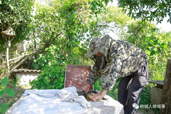 蜜蜂是一種群居性、社會(huì)性昆蟲,整個(gè)群體由一只蜂王、少數(shù)雄蜂和大量工蜂組成。覃莫英說,生活里,他會(huì)花一些時(shí)間去觀察蜜蜂的生活習(xí)性,盡可能用自己學(xué)到的一些小技巧,確保小蜜蜂們順利安家和采蜜。他發(fā)現(xiàn)山上的蜜蜂選擇筑巢的位置,無論石洞多深,都會(huì)有泥土。所以,在家門養(yǎng)殖的蜜蜂,他用水泥磚建了一個(gè)個(gè)長(zhǎng)、寬約1米的“家”,每個(gè)“家”放兩箱蜜蜂。這樣一來,不僅能模擬蜜蜂生存的戶外環(huán)境,還能在冬天給蜜蜂做好保暖,確保蜜蜂的存活率。