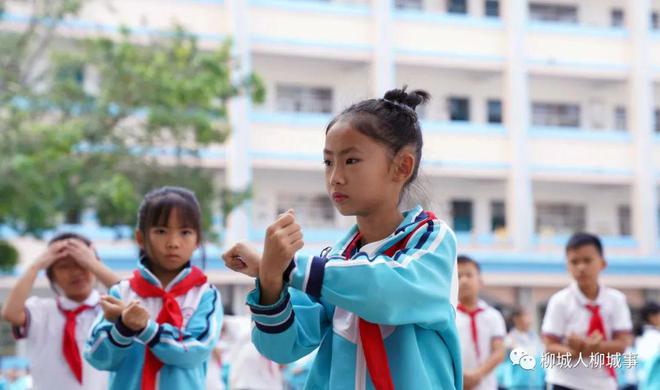 此外,在柳城縣實(shí)驗(yàn)小學(xué)教育集團(tuán)本部校區(qū)操場(chǎng)上,老師一邊講解太極拳動(dòng)作要領(lǐng),一邊做示范,帶領(lǐng)學(xué)生們學(xué)習(xí)太極拳。學(xué)生們身著校服,齊練太極拳的場(chǎng)景成為校園一道靚麗的風(fēng)景線。