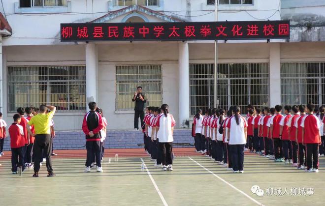據(jù)了解,柳城縣于9月份啟動(dòng)太極拳文化進(jìn)校園活動(dòng),共分為兩個(gè)階段,第一階段的培訓(xùn)對(duì)象為柳城縣民族中學(xué)、柳城縣文昌中學(xué)、柳城縣文昌小學(xué)、柳城縣實(shí)驗(yàn)中學(xué)、柳城縣實(shí)驗(yàn)小學(xué)5所試點(diǎn)學(xué)校的體育老師;第二階段為5所試點(diǎn)學(xué)校學(xué)生,小學(xué)三年級(jí)以上學(xué)生和中學(xué)全體學(xué)生。如今已進(jìn)入第二階段,即老師對(duì)學(xué)生進(jìn)行太極拳教學(xué)階段。