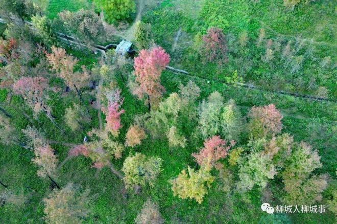 俯瞰楓林,好像是多彩的油漆被隨意地潑撒出去,卻沒(méi)有刷均勻,那般無(wú)拘無(wú)束和寫意。