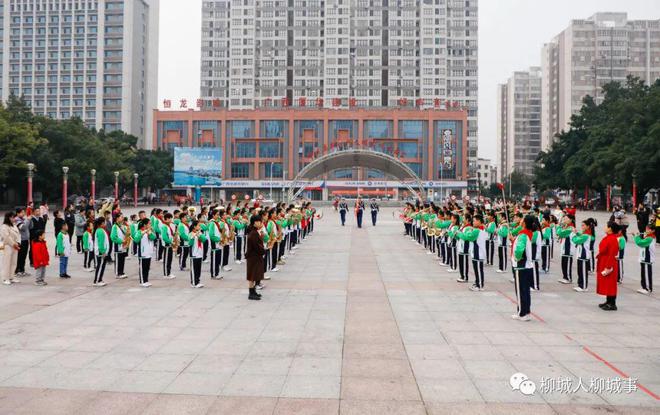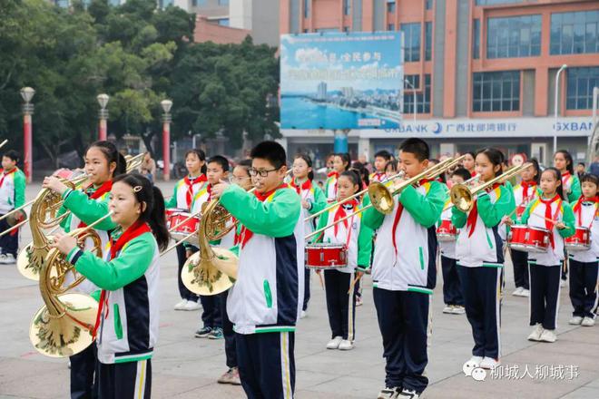柳城縣文昌小學(xué)教育集團(tuán)的管樂(lè)團(tuán)進(jìn)行伴奏