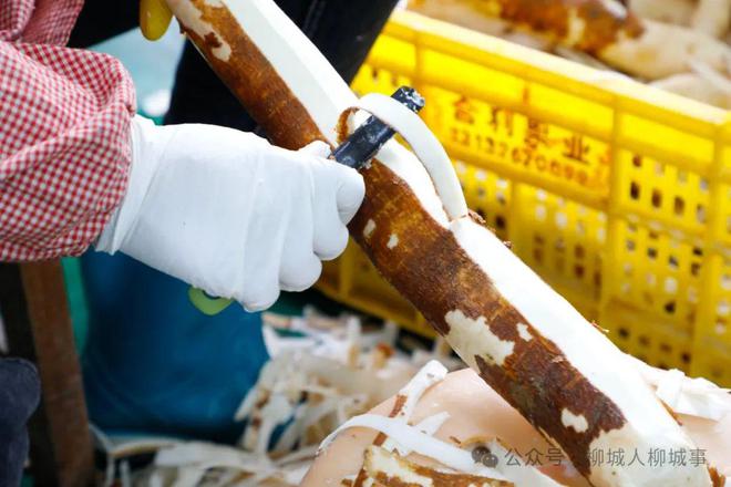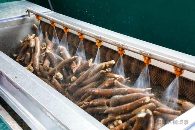 近日,張文的柳佳銚水果木薯加工廠里十分忙碌,今天他要完成100個木薯年糕的訂單。張文與兩個工人一起,清洗木薯,把木薯表皮削掉,用設(shè)備把木薯打碎,再用石磨研磨成漿,木薯漿經(jīng)過過濾、沉淀、擠壓等工序,成為制作木薯年糕的主要材料。