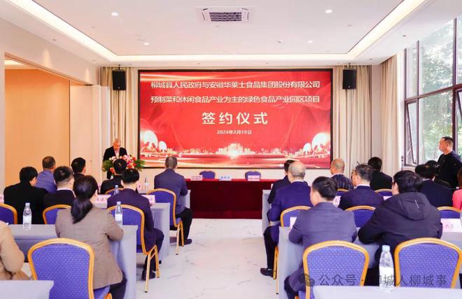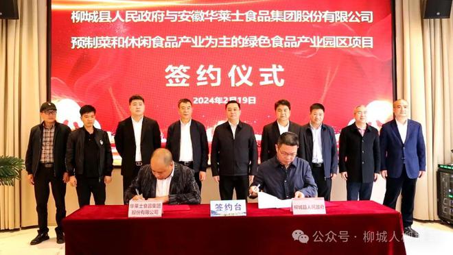 2月19日,柳城縣人民政府與安徽華萊士食品集團(tuán)股份有限公司預(yù)制菜和休閑食品產(chǎn)業(yè)為主的綠色食品產(chǎn)業(yè)園區(qū)項(xiàng)目簽訂儀式在柳城縣紫荊花酒店舉行。