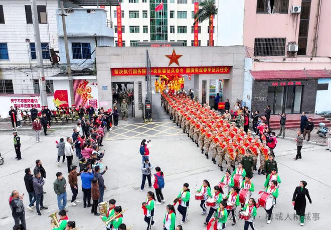 歡送現(xiàn)場,縣文昌小學(xué)教育集團鼓號隊和激情洋溢的舞獅隊讓現(xiàn)場氣氛歡快又熱烈。新兵身穿戎裝,整齊列隊,精神抖擻、意氣風(fēng)發(fā)。胸前的大紅花和綬帶披肩映紅一張張滿是憧憬的臉龐。從此,他們青春的卷軸上多了一抹迷彩的亮色。