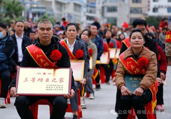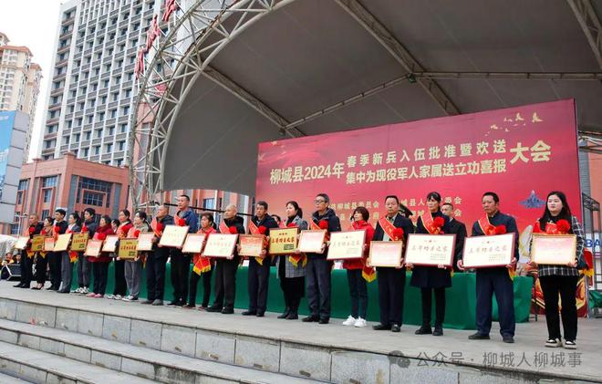 大會宣讀了2023年度柳城縣立功人員名單。柳城縣領(lǐng)導(dǎo)和相關(guān)負責(zé)人為立功軍屬送喜報、牌匾、鼓勵獎、鼓勵金。