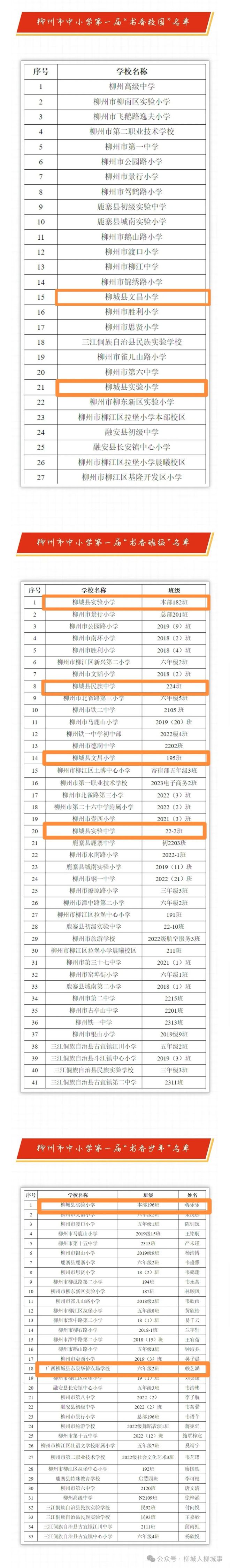 近日,柳州市教育局發(fā)布《關于公布柳州市中小學第一屆“書香校園、書香班級、書香少年”評選結果的通知》。其中,柳城縣文昌小學(教育集團)、柳城縣實驗小學?(教育集團)獲評為“書香校園”;柳城縣實驗小學?(教育集團)本部182班、柳城縣民族中學224班、柳城縣文昌小學(教育集團)195班、柳城縣實驗中學22-2班獲評為“書香班級”;柳城縣實驗小學 (?教育集團)本部196班蔣樂樂、柳城縣東泉華僑農場學校六年級2班賴藝涵獲評為“書香少年”。