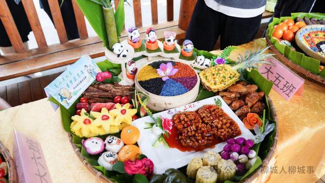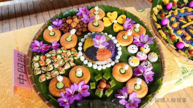 最令大家期待的就是簸箕美食評比環(huán)節(jié)了。各個班級使出十八般武藝,用糍粑、彩色糯米飯、紅雞蛋等食材,擺出一份份造型獨特、創(chuàng)意十足的簸箕美食。