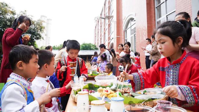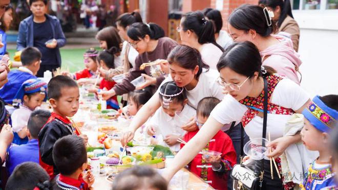 4月9日,柳城縣中心幼兒園舉辦“潮起三月三 奮進新征程”慶?;顒?。全體師生身著少數(shù)民族服飾載歌載舞,擺設(shè)長桌宴,共享美食,歡慶“廣西三月三”。