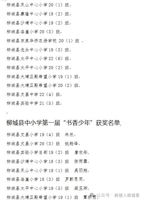 為獲得柳城縣中小學(xué)第一屆“書香校園”、柳城縣中小學(xué)第一屆“書香班級(jí)”、柳城縣中小學(xué)第一屆“書香少年”榮譽(yù)稱號(hào)的16個(gè)集體、16名學(xué)生進(jìn)行表彰,并頒發(fā)證書。