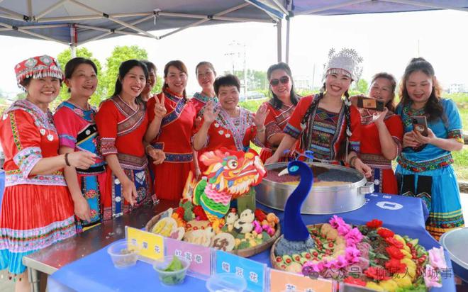 現(xiàn)場還設(shè)置了特色農(nóng)產(chǎn)品集市、壯家美食手作體驗、團扇制作、對山歌、百家宴等豐富多彩的活動,讓眾多游客們上前游玩體驗。