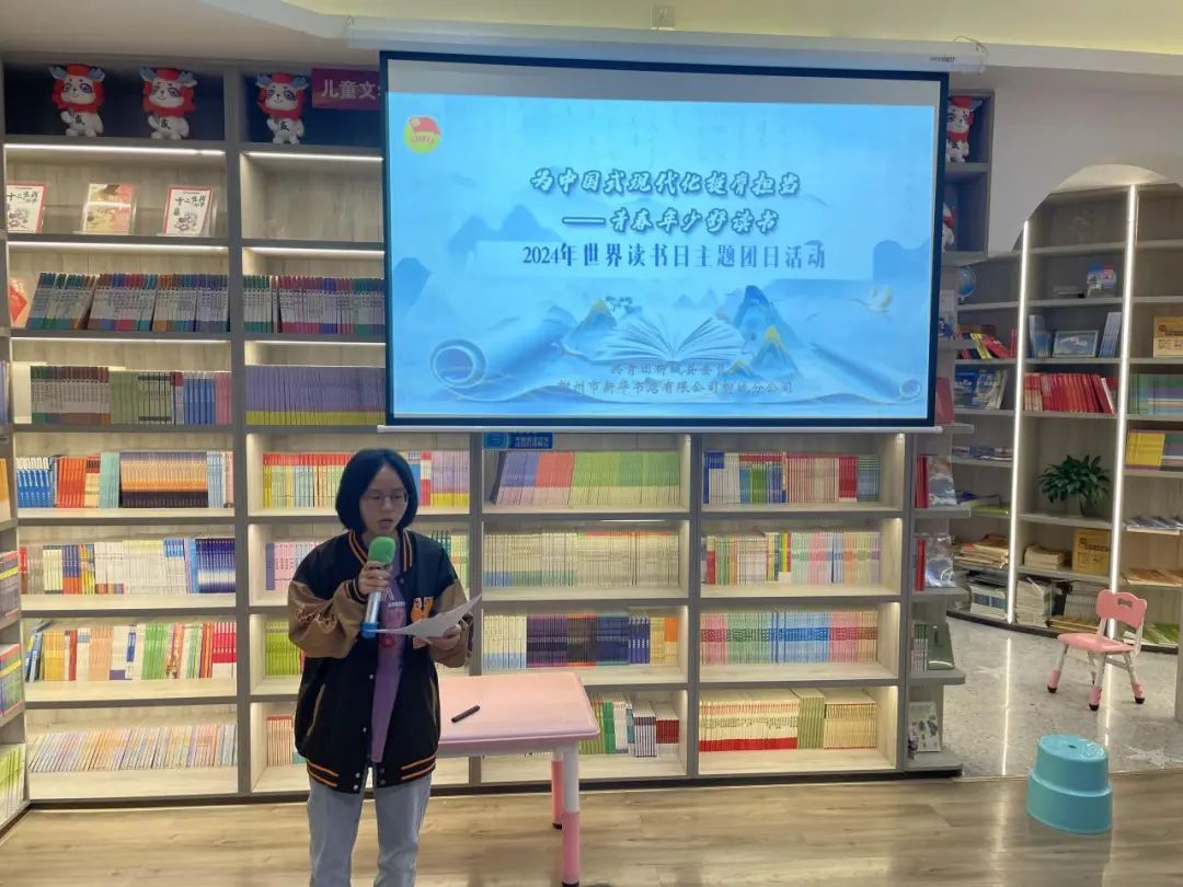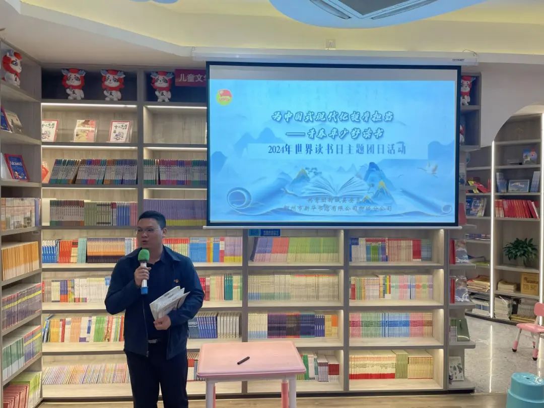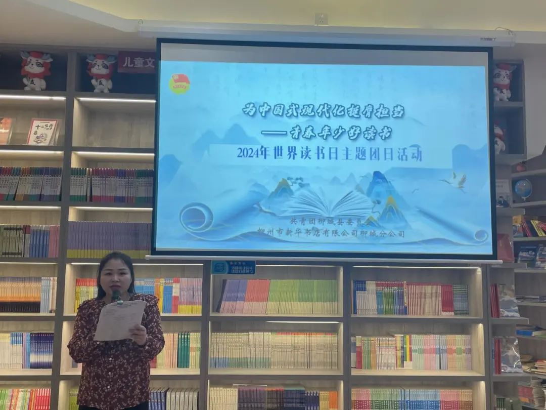 活動伊始,柳州市新華書店有限公司柳城分公司副經(jīng)理鐘威帆進(jìn)行“世界讀書日”主題宣講,號召團(tuán)員青年們閱讀好書、品味經(jīng)典,樂于讀書、持之以恒。